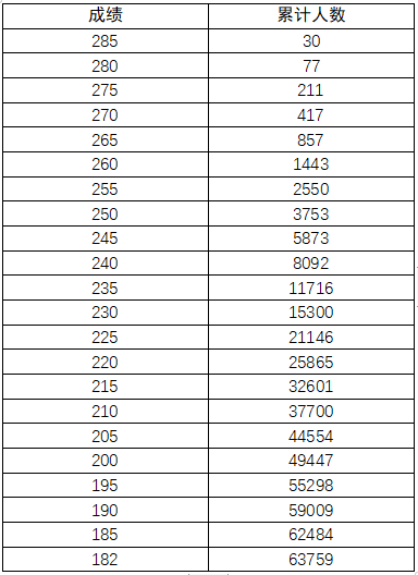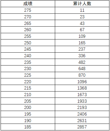 注:累计人数指该对应分数及以上考生累计人数。